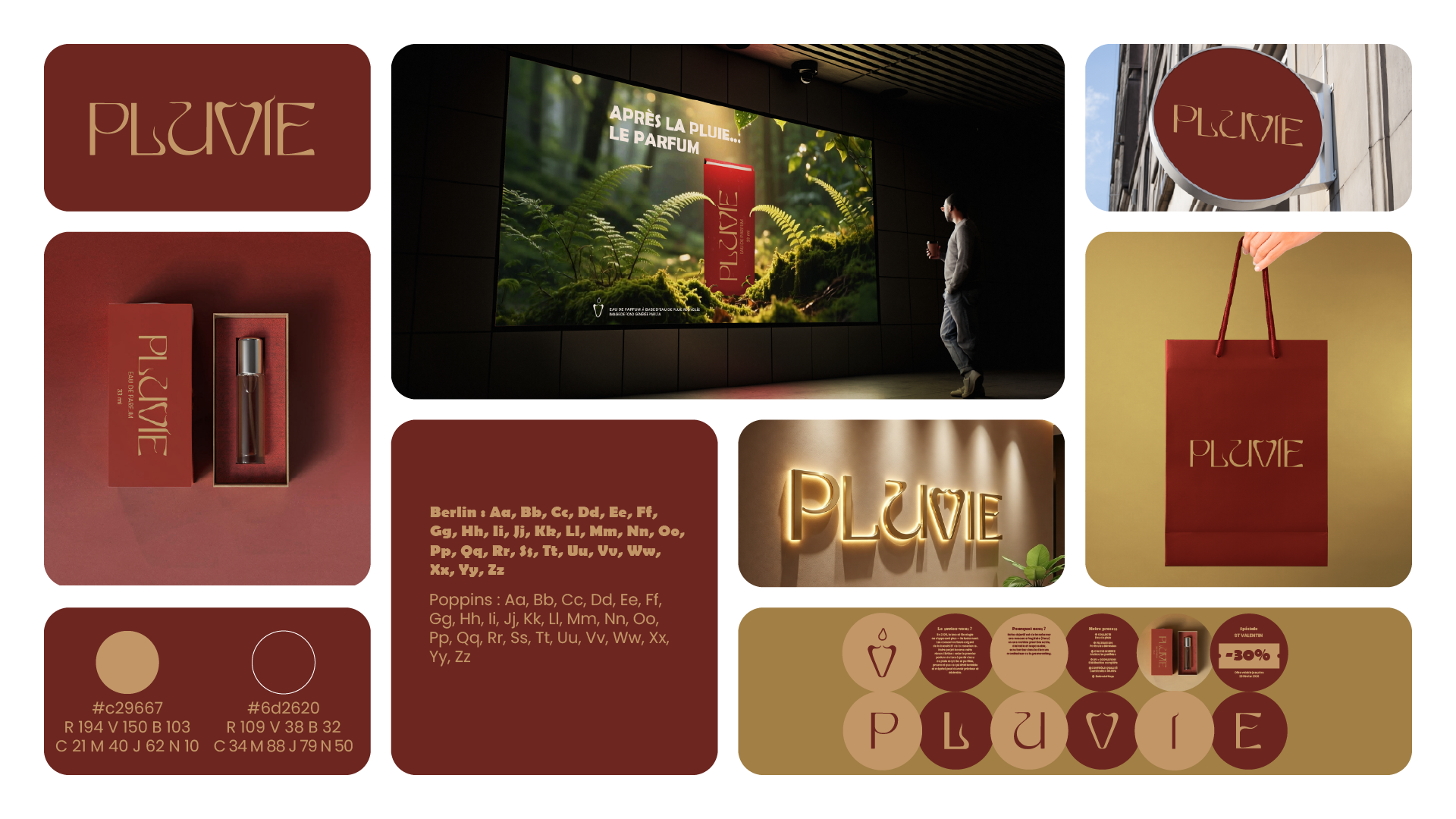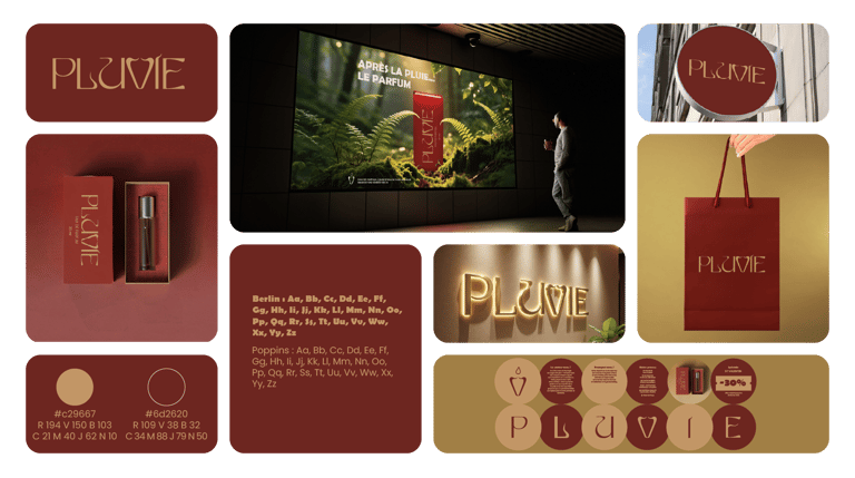 PLUVIE est une maison de haute parfumerie qui capture l'essence olfactive de la nature après l'averse. Le projet visait à créer une identité de marque élégante et sensorielle, capable d'évoquer à la fois la terre humide et la clarté retrouvée de l'atmosphère.