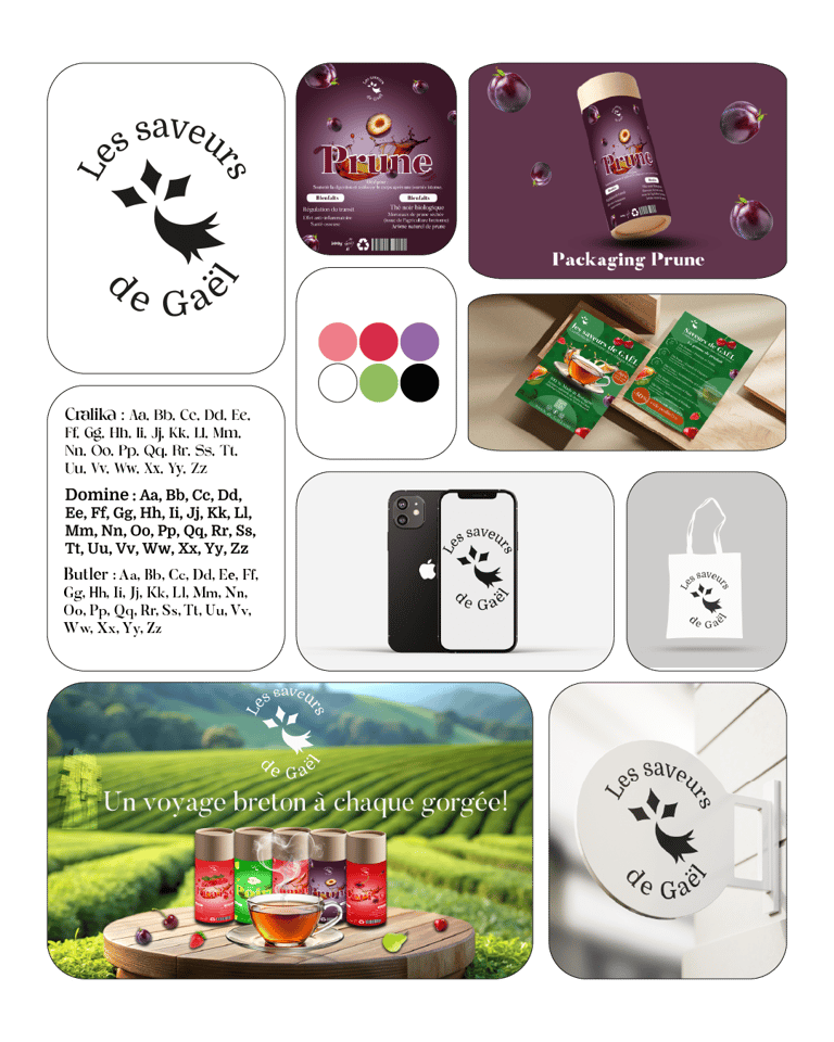 Les Saveurs de Gaël est une marque bretonne spécialisée dans les thés et infusions haut de gamme. Le projet consistait à créer une identité de marque forte capable de transmettre l'héritage d'un terroir tout en s'inscrivant dans un marché contemporain et exigeant.